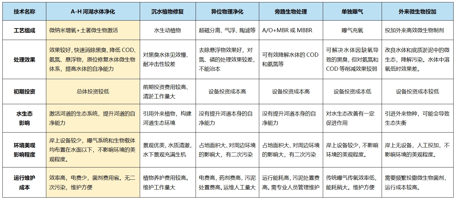 A-H河湖水體凈化技術與其他技術的比選