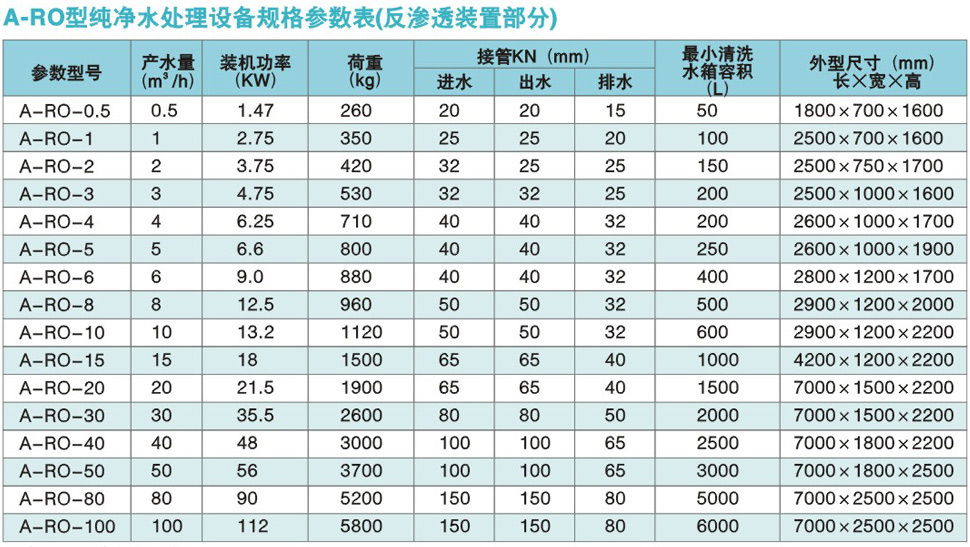 A-RO系列產(chǎn)品的出水量范圍由0.5m3 至100m3/h。反滲透壓力容器為不銹鋼或玻璃鋼材質(zhì),反滲透膜采用低壓復(fù)合膜,系統(tǒng)脫鹽率達(dá)97%以上,運(yùn)行壓力為0.8-1.6MPa左右,具體視水溫及水質(zhì)而定。